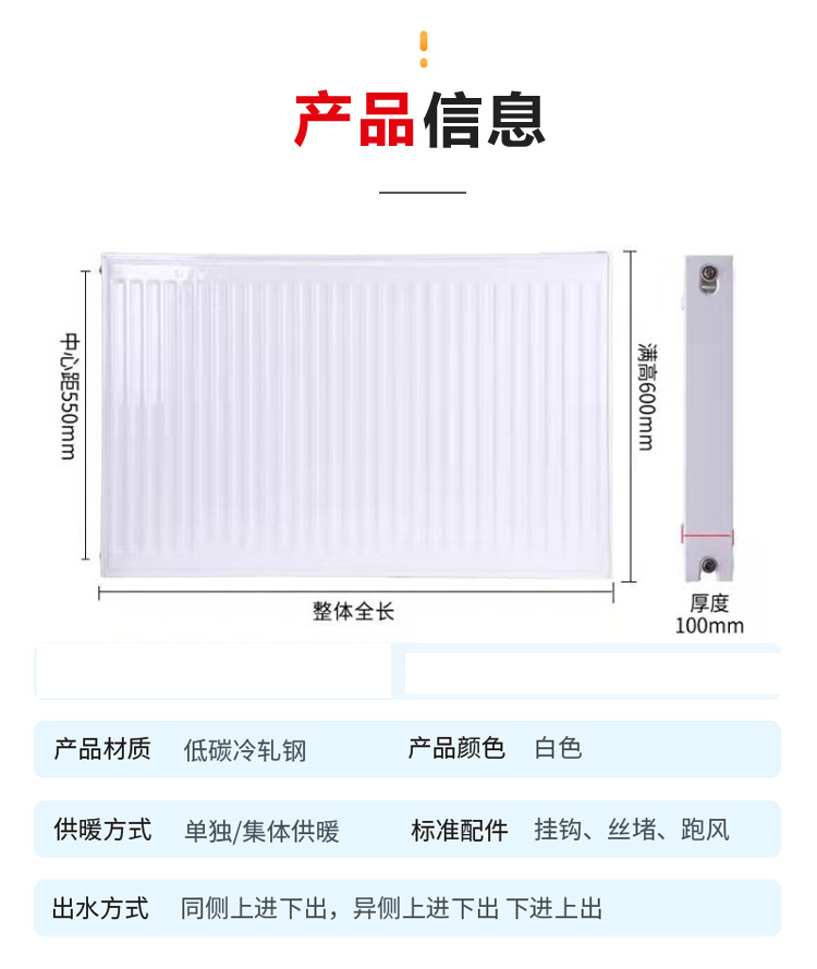鋼制板式散熱器采用冷軋低碳鋼板為原料的新型高效節(jié)能散熱器。此產(chǎn)品裝飾性強(qiáng),小體積能達(dá)到良好的散熱效果,無需加暖氣罩,大程度減小室內(nèi)占用空間,提高房間的利用率。